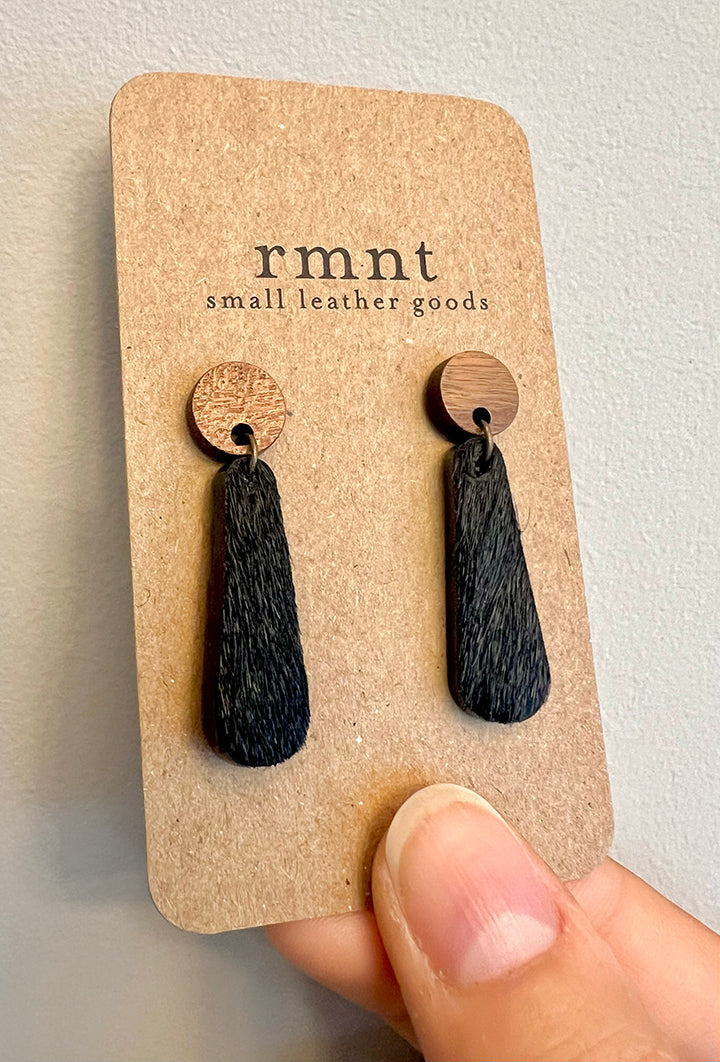Each pair of leather earrings is punched, glued and finished in small batches by me in my workshop.